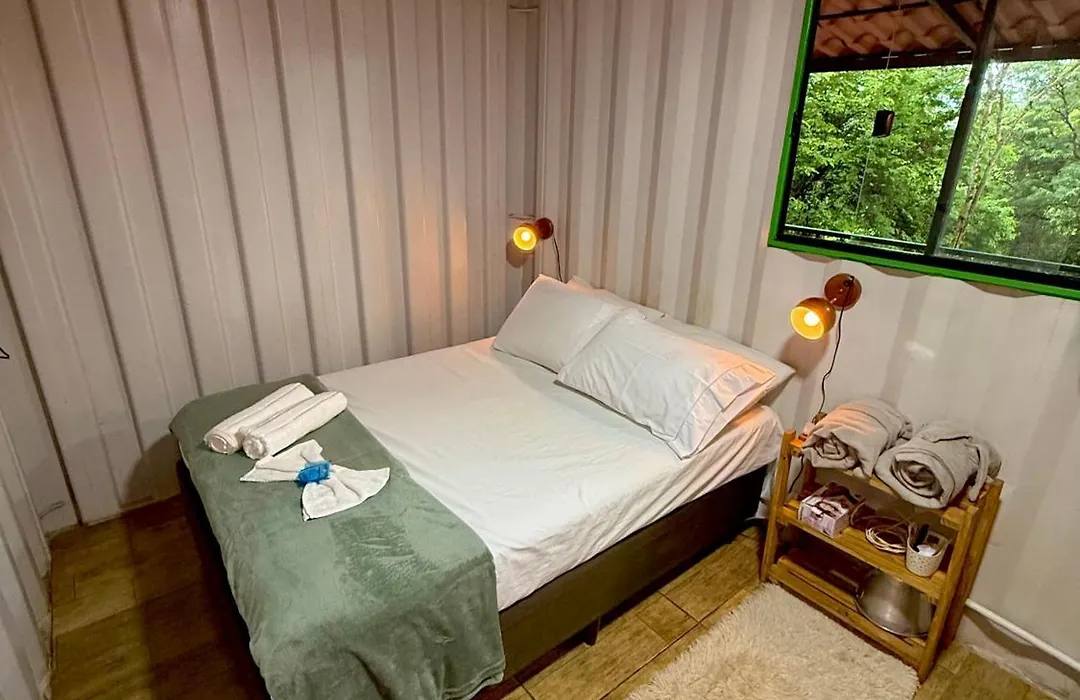 As casas de banho de Cipó Container Vila também incluem chuveiro. Além disso, roupões e produtos de higiene são fornecidos para seu conforto.